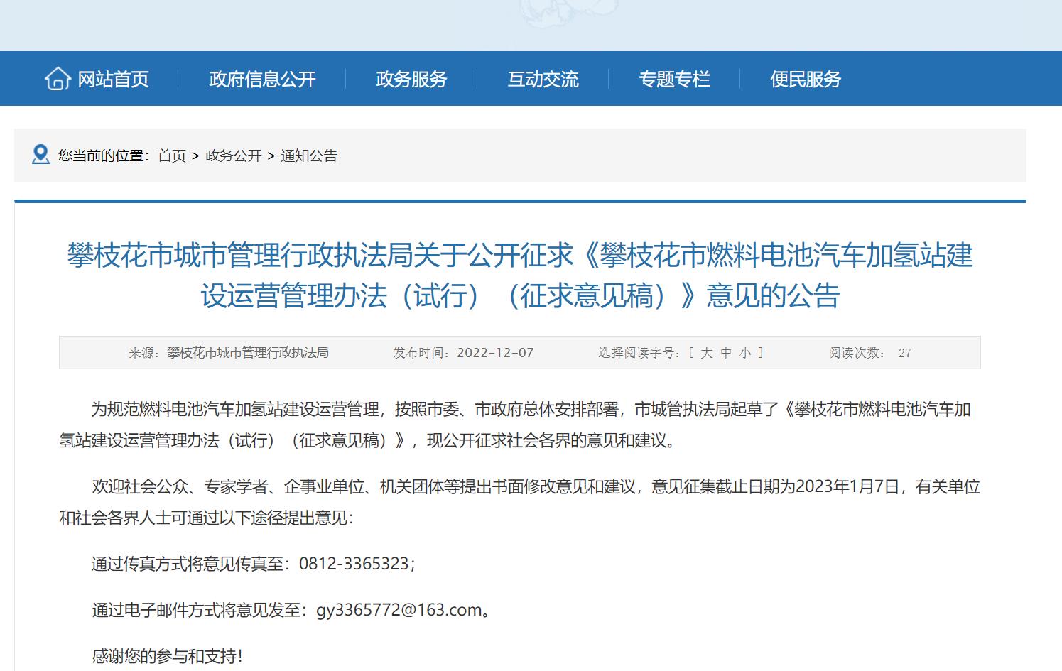 23條規定!攀枝花發布燃料電池汽車加氫站建設運營管理辦法(試行)(征求意見稿)