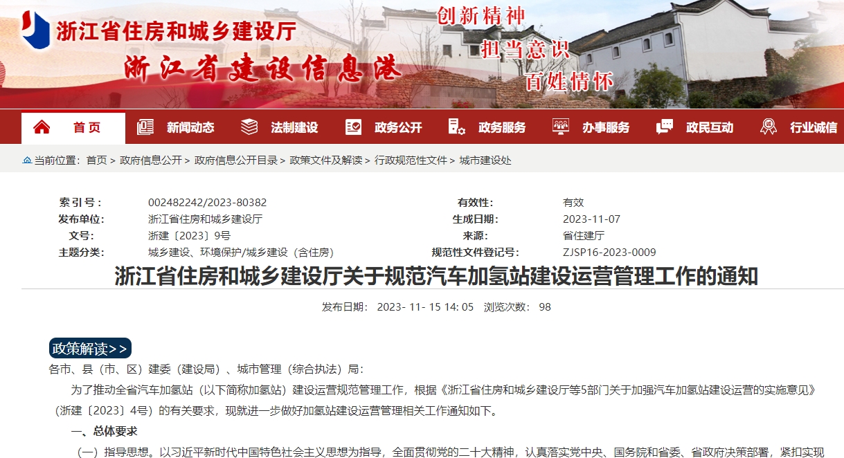 12點要求!浙江重磅通知推動加氫站建設管理全面升級