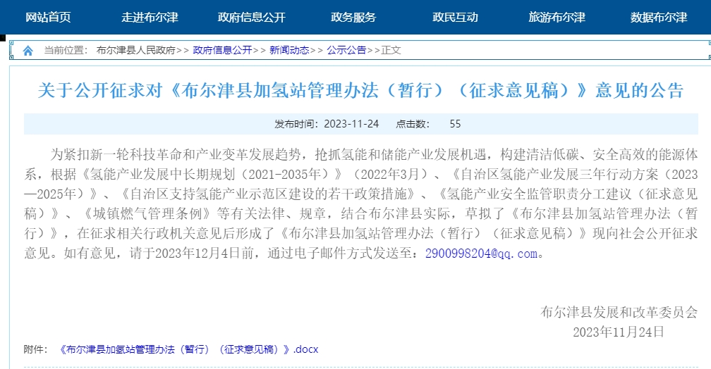 布爾津縣加氫站管理辦法(暫行)(征求意見稿)發布