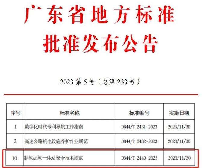 凱豪達氫能源牽頭的廣東省地標《制氫加氫一體站安全技術規范》正式發布