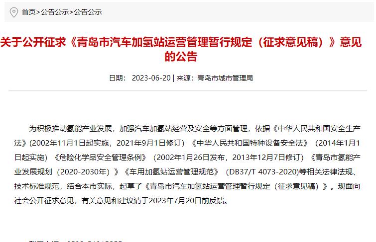 青島出臺(tái)汽車(chē)加氫站運(yùn)營(yíng)管理暫行規(guī)定征求意見(jiàn)稿,涉及多項(xiàng)重要內(nèi)容!