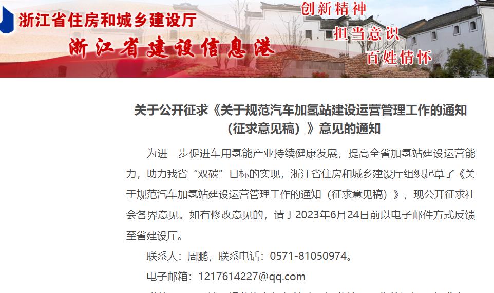 浙江發(fā)布規(guī)范汽車(chē)加氫站建設(shè)運(yùn)營(yíng)管理工作征求意見(jiàn)稿!