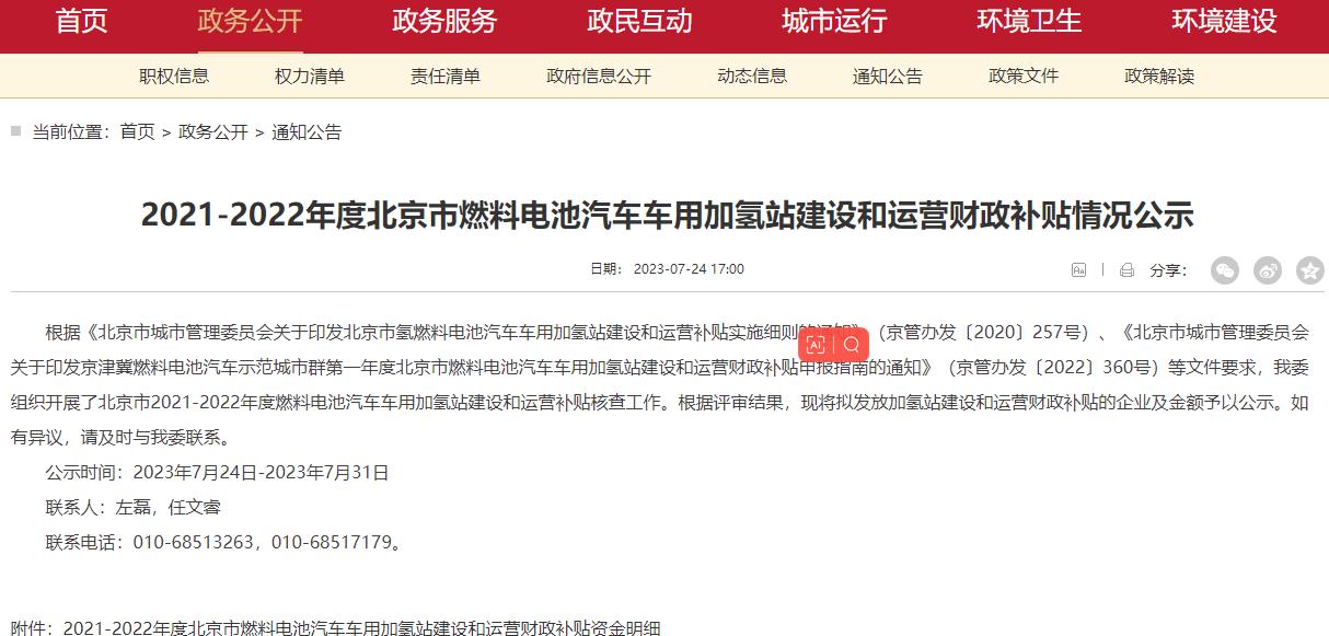 北京市加氫站建設(shè)和運(yùn)營(yíng)補(bǔ)貼政策公布,2021-2022年度財(cái)政補(bǔ)貼情況揭曉!