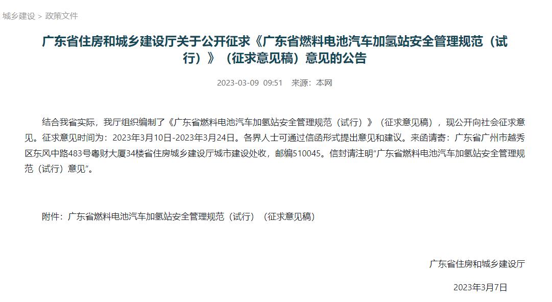 事關加氫站安全管理,《廣東省燃料電池汽車加氫站安全管理規范(試行)》發布