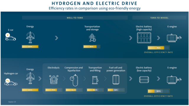 氫能汽車能源效率不到電動汽車的一半,推高成本