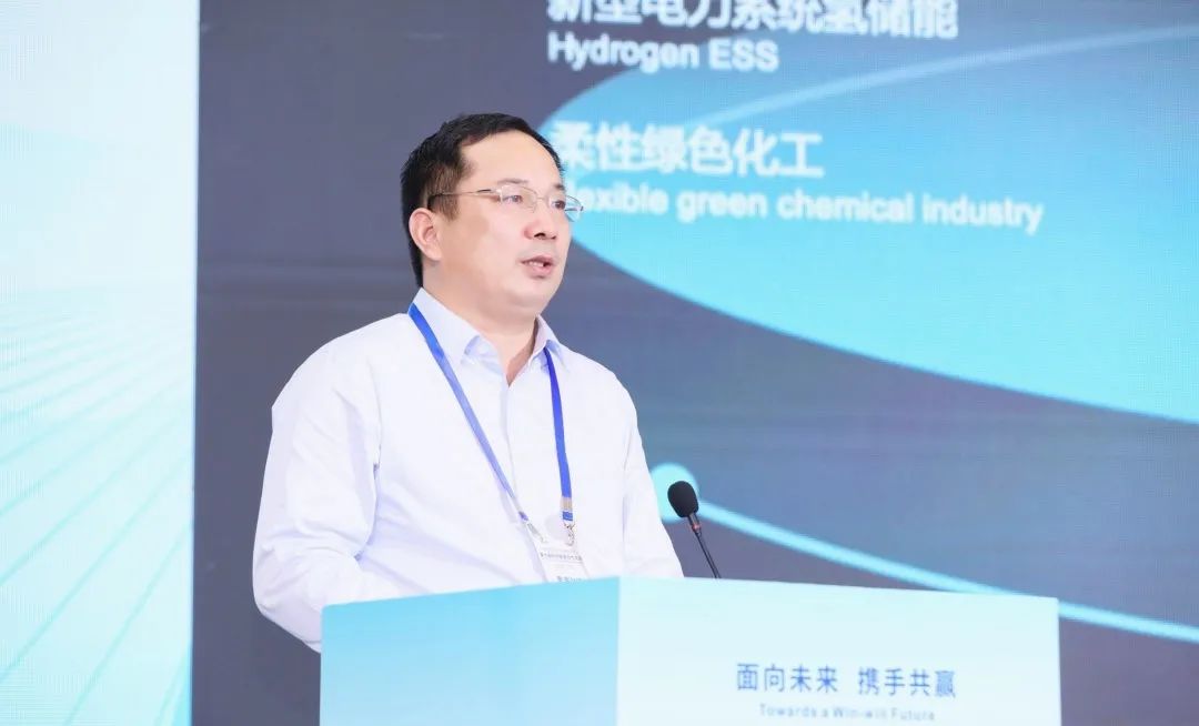 陽(yáng)光電源副總裁、陽(yáng)光氫能公司董事長(zhǎng)彭超才應(yīng)邀參會(huì)并發(fā)表主旨演講,分析了當(dāng)下綠氫產(chǎn)業(yè)發(fā)展的機(jī)遇與挑戰(zhàn)及大規(guī)模制氫場(chǎng)景下,可再生能源柔性制氫的應(yīng)用。