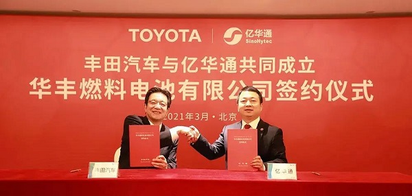 3月29日,北京億華通科技有限公司與豐田汽車(chē)公司簽署協(xié)議,成立合資公司“華豐燃料電池有限公司”,目的在于在中國(guó)推廣商用車(chē)燃料電池系統(tǒng)業(yè)務(wù)。