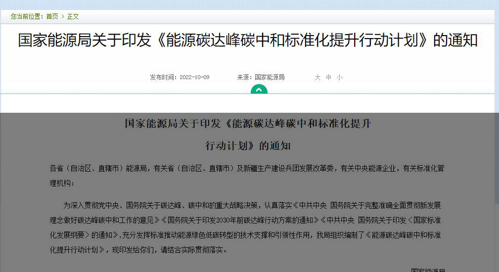 氫啟未來網(wǎng)獲悉,10月9日,為深入貫徹關于碳達峰、碳中和的重大戰(zhàn)略決策,充分發(fā)揮標準推動能源綠色低碳轉型的技術支撐和引領性作用,國家能源局為此印發(fā)《能源碳達峰碳中和標準化提升行動計劃》