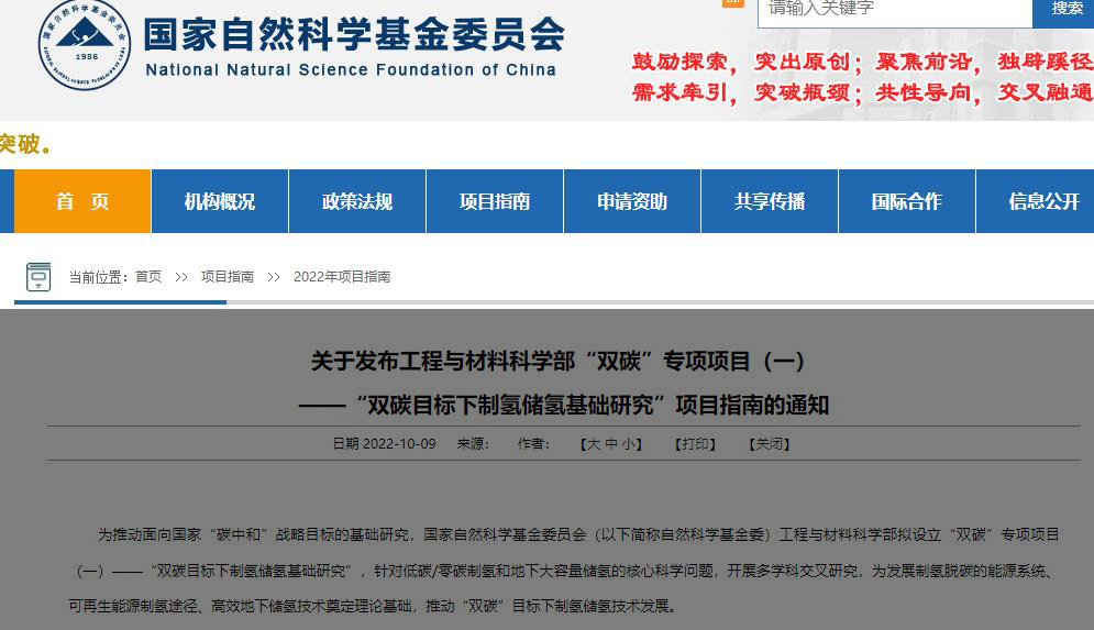 300萬元/項,國家自然科學基金委員會發(fā)布制氫儲氫基礎研究專項申報指南