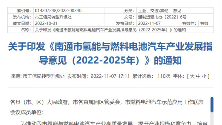 氫能總產(chǎn)值突破200億元!《南通市氫能與燃料電池汽車(chē)產(chǎn)業(yè)發(fā)展指導(dǎo)意見(jiàn)(2022-2025年)》發(fā)布
