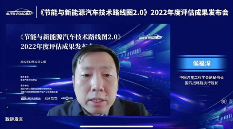 2022年12月23日,由中國汽車工程學會主辦,國際汽車工程科技戰略創新研究院、成都市綠色智能網聯汽車產業生態圈聯盟承辦的《節能與新能源汽車技術路線圖2.0》2022年度評估成果發布會圓滿落幕。本次發布會全程通過線上直播的方式進行,中國汽車工程學會副秘書長、國汽戰略院執行院長侯福深為發布會致辭。
