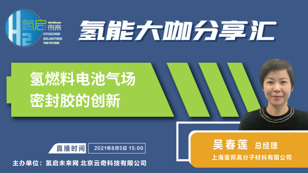 8月5日,下午三時(每周四下午三時直播),由氫啟未來網和北京云奇科技有限公司主辦的氫能大咖分享匯——第16期準時開播,本次分享匯邀請到的大咖是上海毫邦高分子材料有限公司總經理吳春蓮,她作了主題為“氫燃料電池氣場密封膠的創新”的演講。