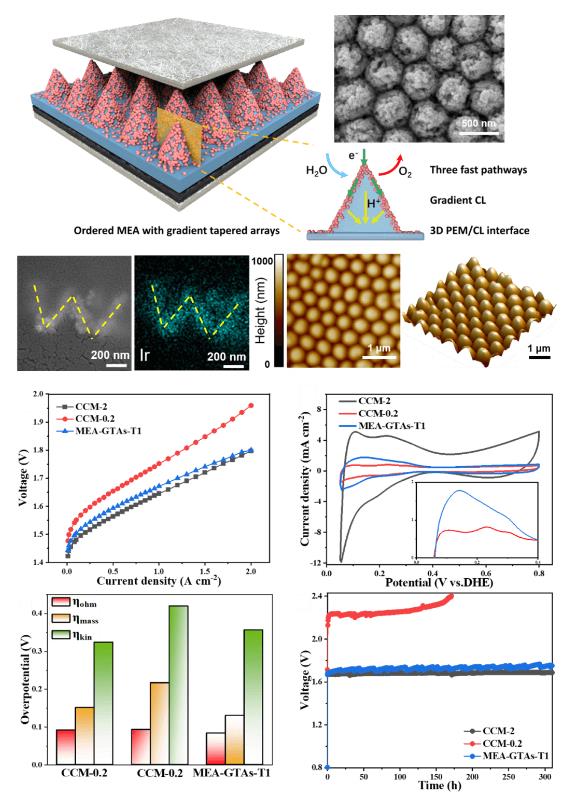 有序結構膜電極示意圖、譜學表征和水電解性能評價