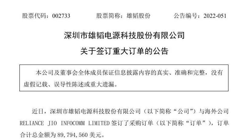 重磅!雄韜股份獲得89794560美元訂單