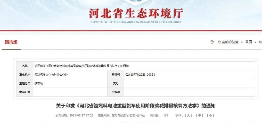 未勢能源參編《河北省氫燃料電池重型貨車使用階段碳減排量核算方法學》正式發布