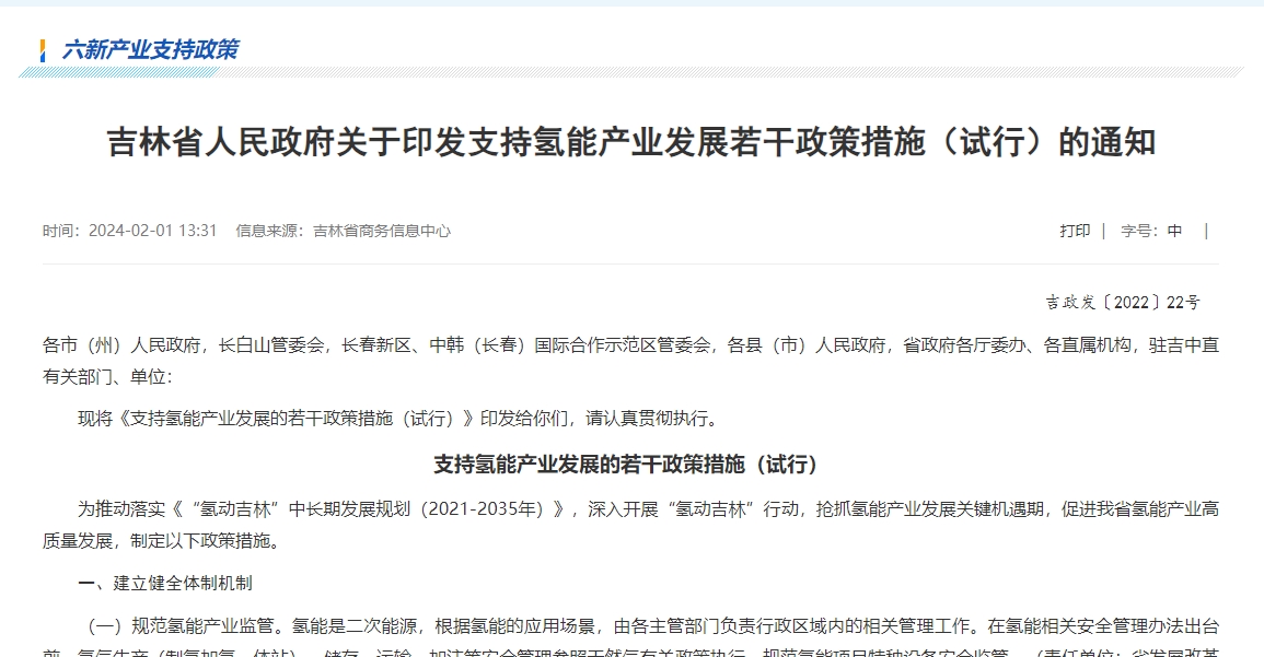 加速“氫動吉林”行動!吉林推出氫能產(chǎn)業(yè)新政措施