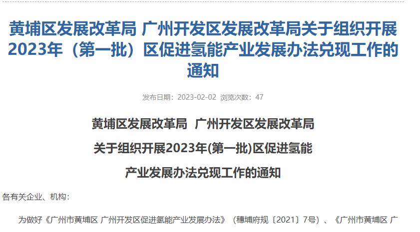 廣州黃埔啟動2023年首批氫能產業補貼申報