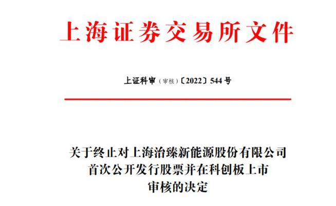 上海證券交易所表示,上海治臻新能源股份有限公司因發行人撤回發行上市申請及保薦人撤銷保薦,根據《上海證券交易所科創板股票發行上市審批規則》第六十七條第(二)項的規定,上海證券交易所終止了治臻股份發行上市審核。