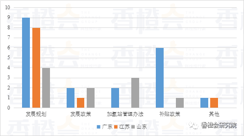 圖表4 排名前三省份已發(fā)布?xì)淠芎腿剂想姵禺a(chǎn)業(yè)相關(guān)不同政策類(lèi)型數(shù)量