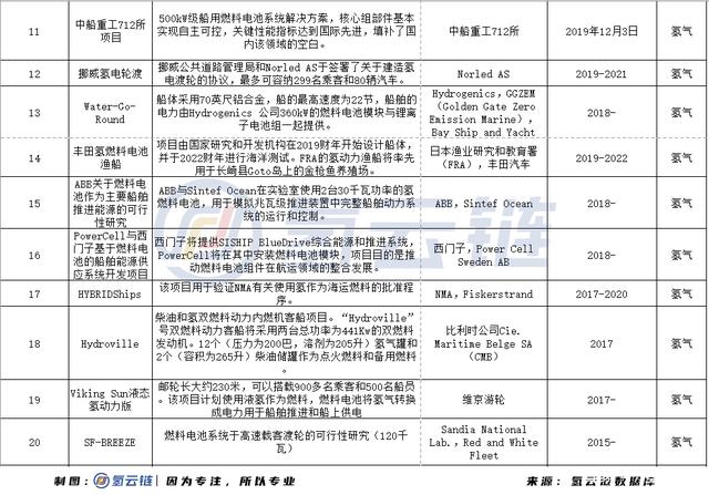 附表:全球船用燃料電池項(xiàng)目