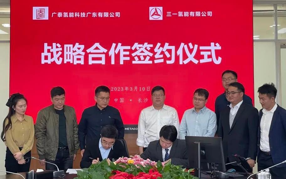 廣泰氫能創(chuàng)始人徐建中、三一氫能總經(jīng)理饒洪宇等參加了簽約儀式。